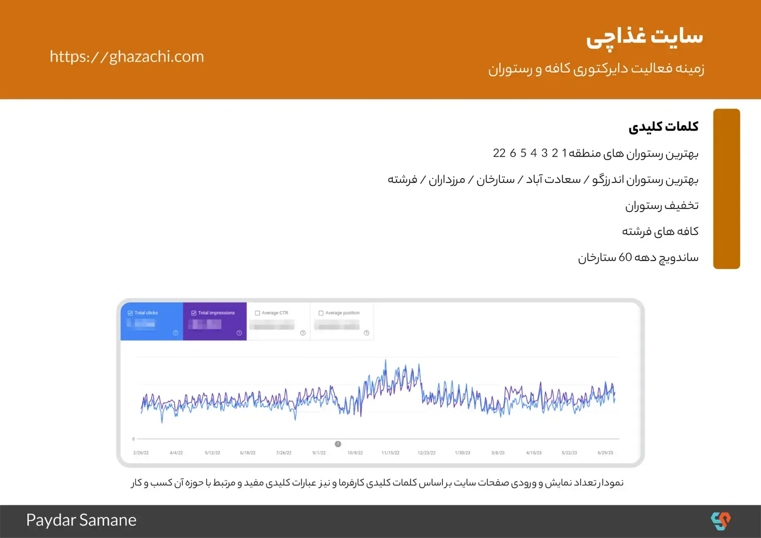آقای امین جناب با هدف افزایش دیدهشدن برند غذاچی در گوگل و جذب ورودی ارگانیک هدفمند، از پکیج سئوی ما استفاده کردند. در این همکاری، با تحقیق دقیق کلمات کلیدی، طراحی ساختار صفحات، تولید محتوای بهینه و لینکسازی اصولی، تمرکز ویژهای روی عباراتی مثل: